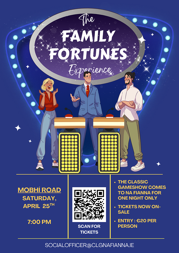 We have a fantastic club-wide social event planned for the 25th April as Na Fianna welcomes "The Family Fortunes Experience" to Mobhí Road.